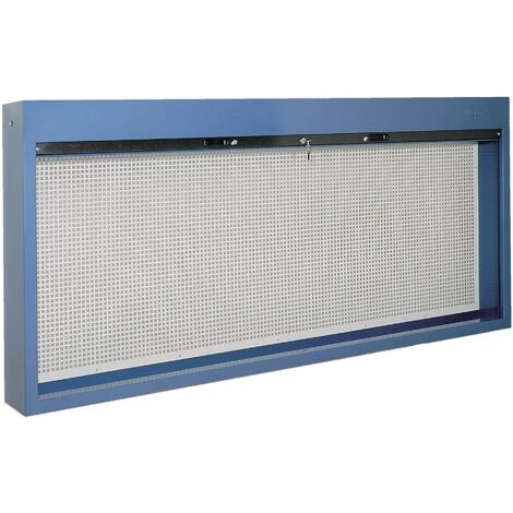 Caractéristiques: Panneau perforé Construction solide en plaque d’acier avec laque martelée de couleur bleue Volet roulant métallique avec mécanisme de retenue Livrable en largeurs 1000, 1300, 1500, 1800 et 2000mm Livré sans crochets ni supports d’outils Verrouillable
