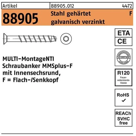 · Produkt-Typbezeichnung: MULTI-MONTI Schraubanker MMSplus-F mit Innensechsrund, F = Flach-/Senkkopf